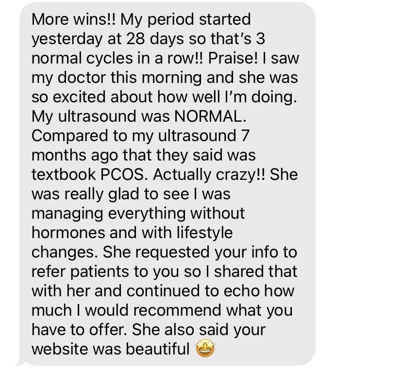 One of my clients just had a follow-up ultrasound after 3 months of working together—all of her cysts were gone. (which btw she did this in the busyness of summer and traveling and fun…just saying.)